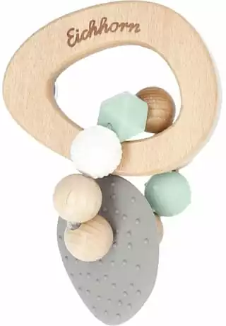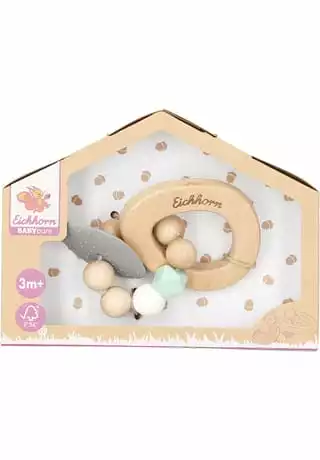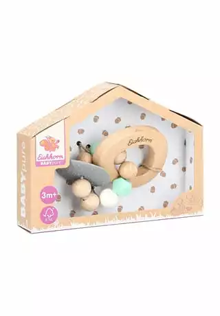 Eichhorn Baby Pure Beißring: Mit Eichhorn BabyPure kann das Baby naturverbunden und nachhaltig die Welt erkunden. Der hochwertige Beißring aus Buchenholz hat unterschiedliche haptische Reize. Die unterschiedlichen Fühlperlen und die Beißfläche wird zu einem Sinneserlebnis für die kleinen Händchen und ein Blickfang für die Augen. Für die Herstellung des Eichhorn Greiflings wird ausschließlich FSC® 100% Holz aus nachhaltiger Forstwirtschaft verwendet. Für Babys ab drei Monaten geeignet.