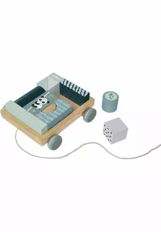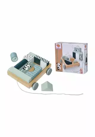 Nachziehwagen enthält 11 unterschiedlich geformte Bauklötze